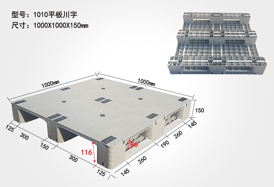 1010平板川字托盤 | 1000*1000*150 | 1T | 4T | 8 | |