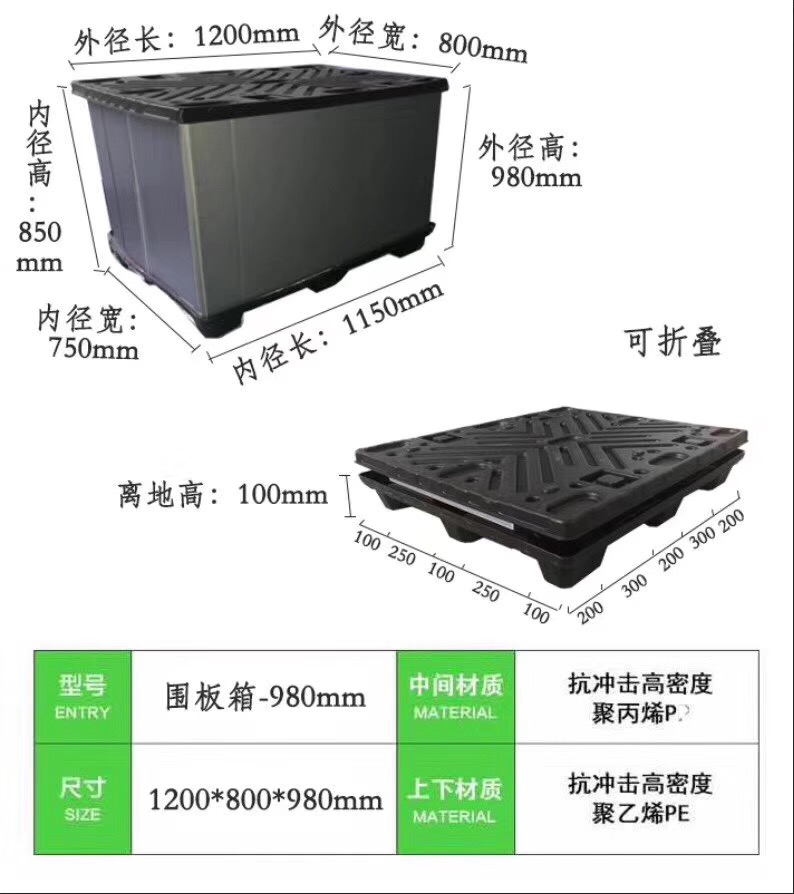 | 1200*800*980圍板箱 | 1200*800*980 | 1T | 4T | |